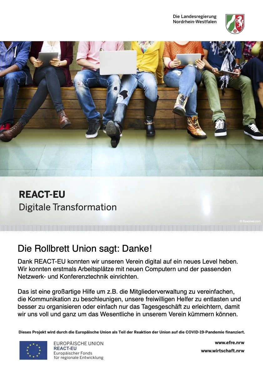 Dank des Stadtsportbunds MG wurden wir auf das EU-Förderprogramm REACT-EU, aus dem Europäischen FONDS für regionale Entwicklung im Bereich “Digitalisieren gemeinnütziger Sportorganisationen in NRW”, aufmerksam.